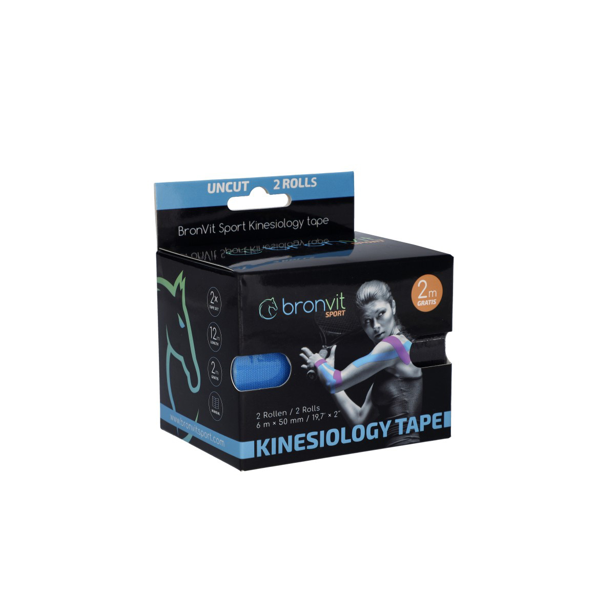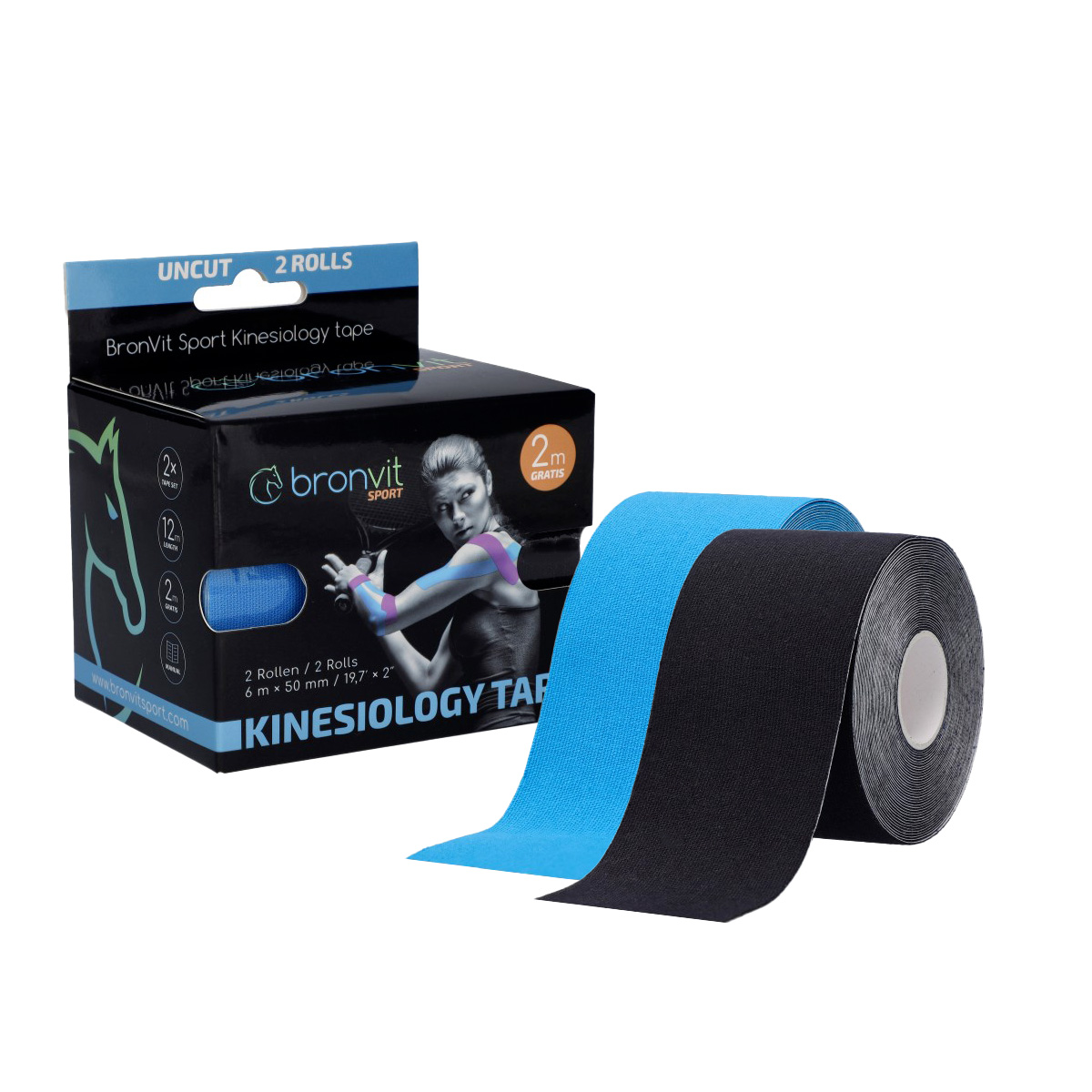 BronVit Sport Kinesio Tape set 5 cm x 6 m tejpovací páska 2 ks černá + modrá